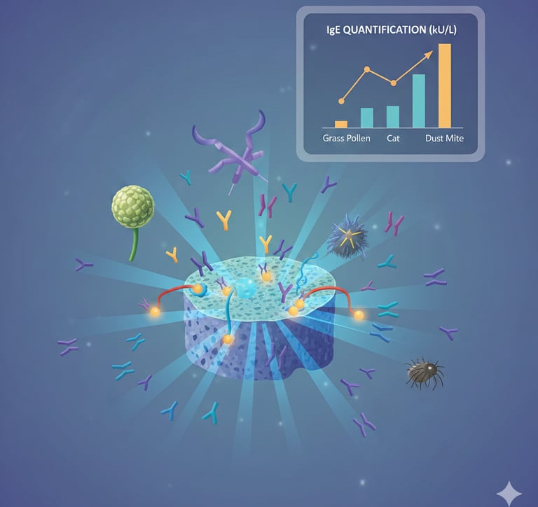 🎯 Alta sensibilidad y especificidad: detecta niveles bajos de IgE específica con gran precisión.